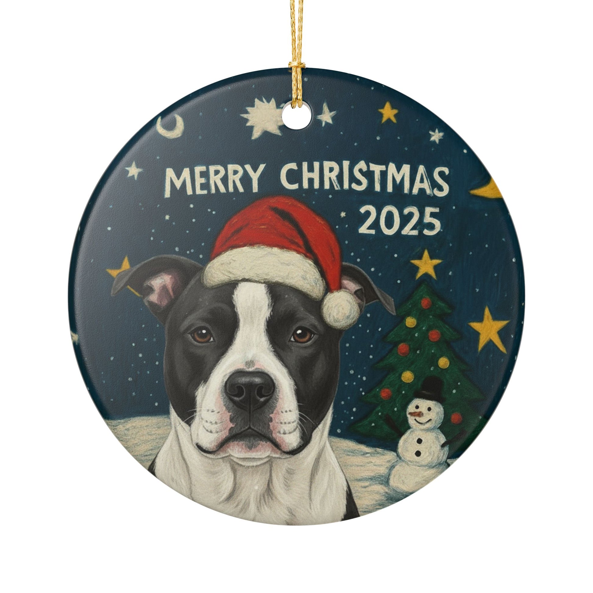 Black and White Pitbull Christmas 2025 - 1 Ceramic